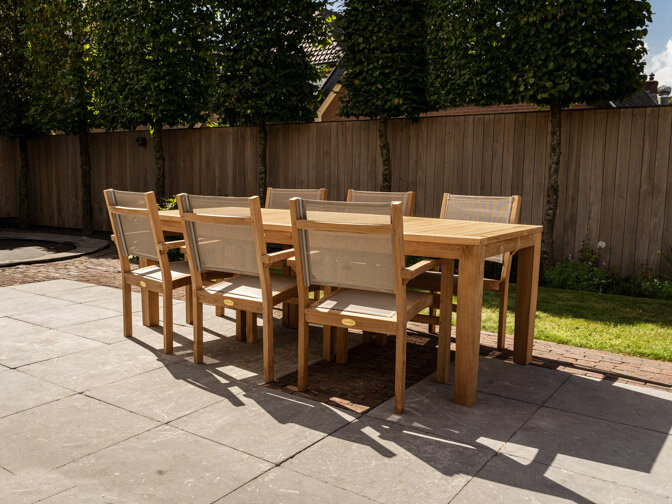 Das Teakholz-Gartenmöbel wird von unserem eigenen Fahrer ins Erdgeschoss geliefert. Bei Bedarf wird es auch kostenlos in Ihrem Garten aufgebaut.