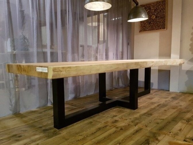 Dieser robuste Metalltischfuß für Baumstammtische passt perfekt unter die langen Baumstammtische von 400 bis 500 cm. Der Tischfuß ist matt schwarz pulverbeschichtet.