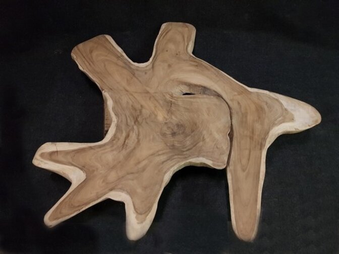 Unsere extravagante Baumstammtischplatte wurde aus einer massiven Suar-Baumscheibe gefertigt.
