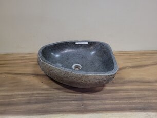 Alle unsere Waschbecken aus Naturstein werden aus Flusssteinen aus Indonesien gefertigt. Diese bestehen aus einer Gesteinsart wie Granit oder Basalt. Da die Außenseite unbehandelt bleibt, ist jedes Waschbecken ein echtes Unikat.